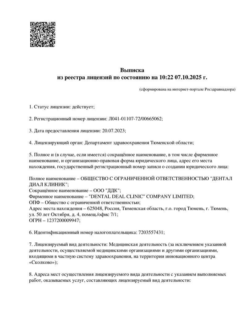 Диапазоны цен на приём врачей и специалистов, услуги и диагностику в Dental Deal (Дентал Диал Тюмень).